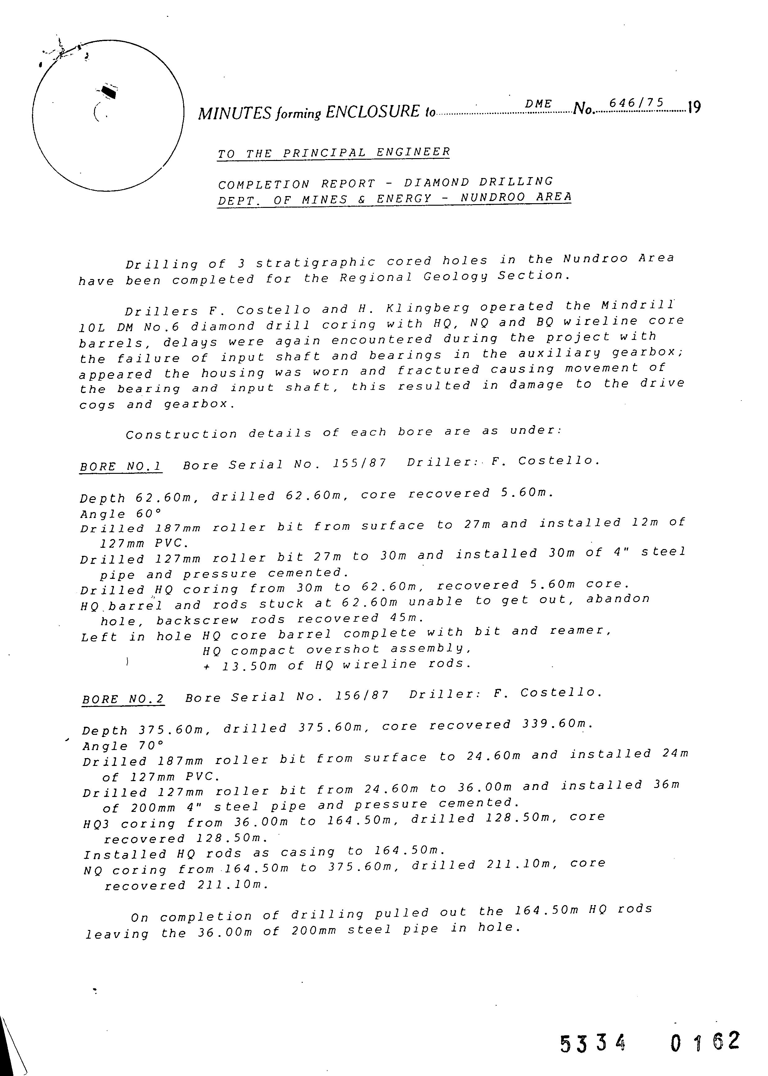| 164 | 165 | Drill core | DALY, S.J. | 27/11/1987 |