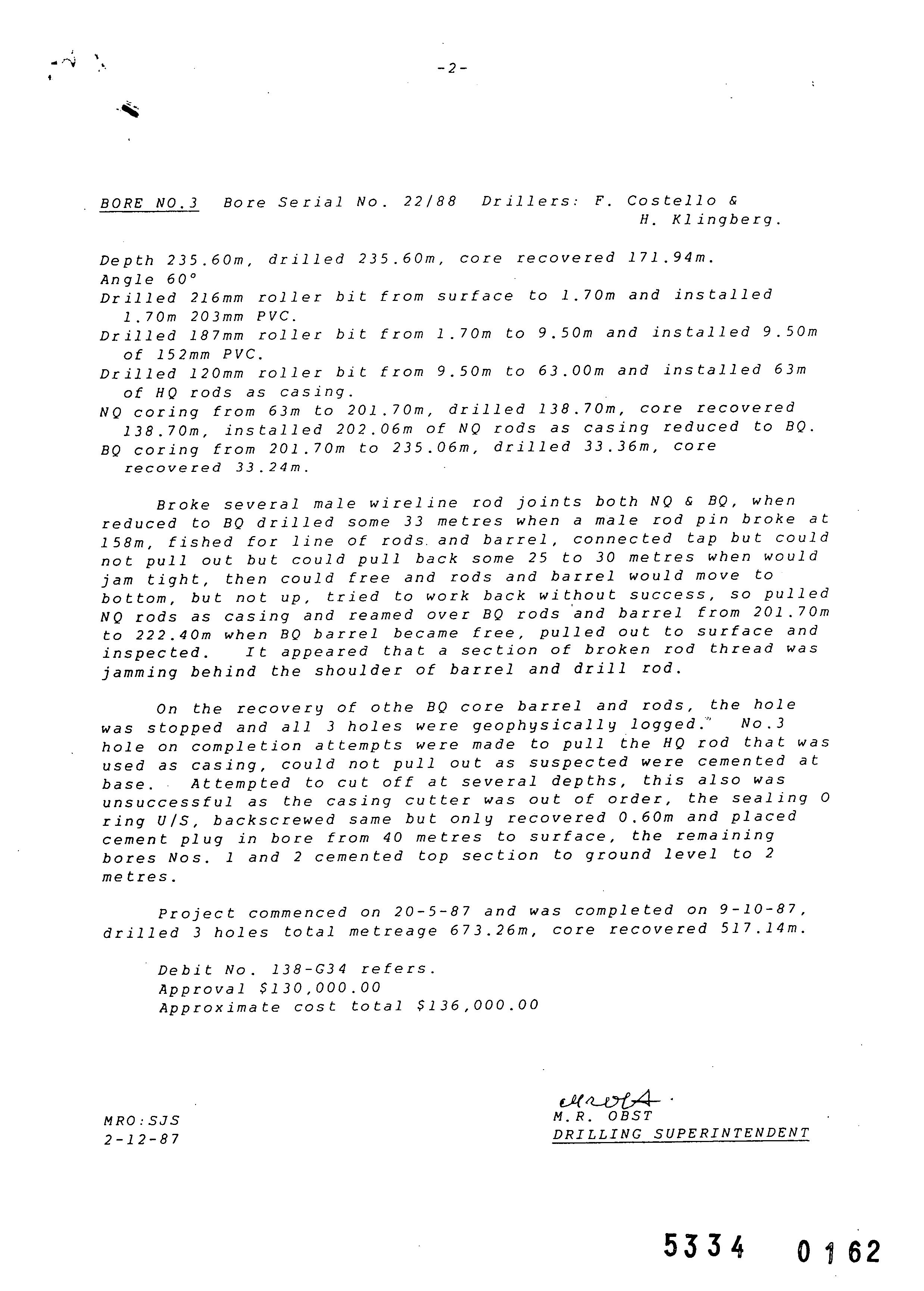 | 229.84 | 229.88 | Drill core | DALY, S.J. | 27/11/1987 |