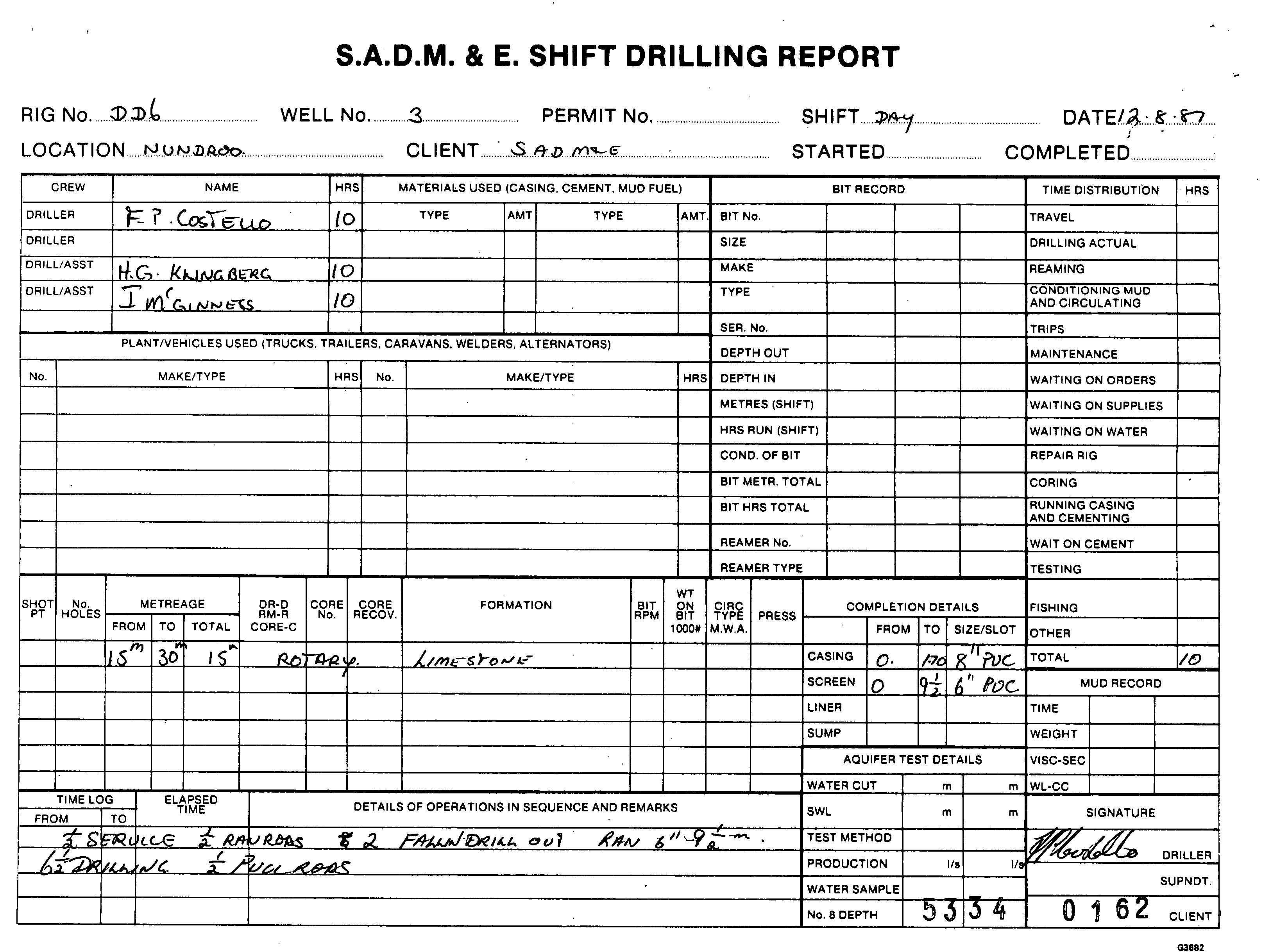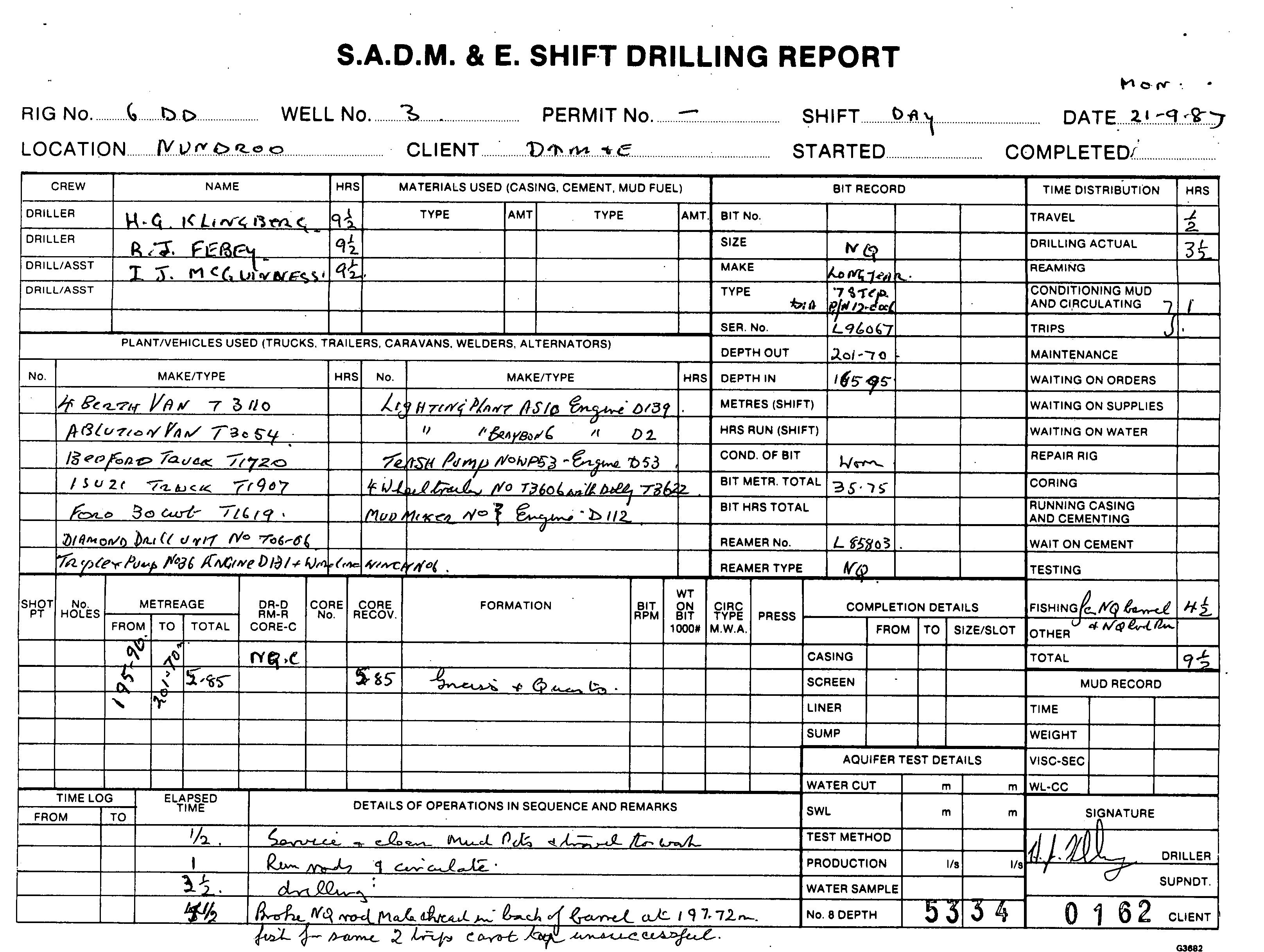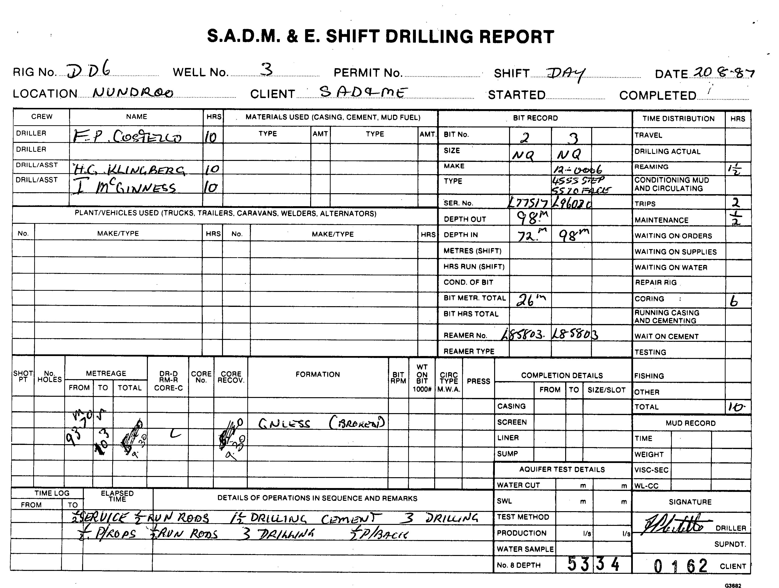 | 187.96 | 188 | Drill core | DALY, S.J. | 27/11/1987 |