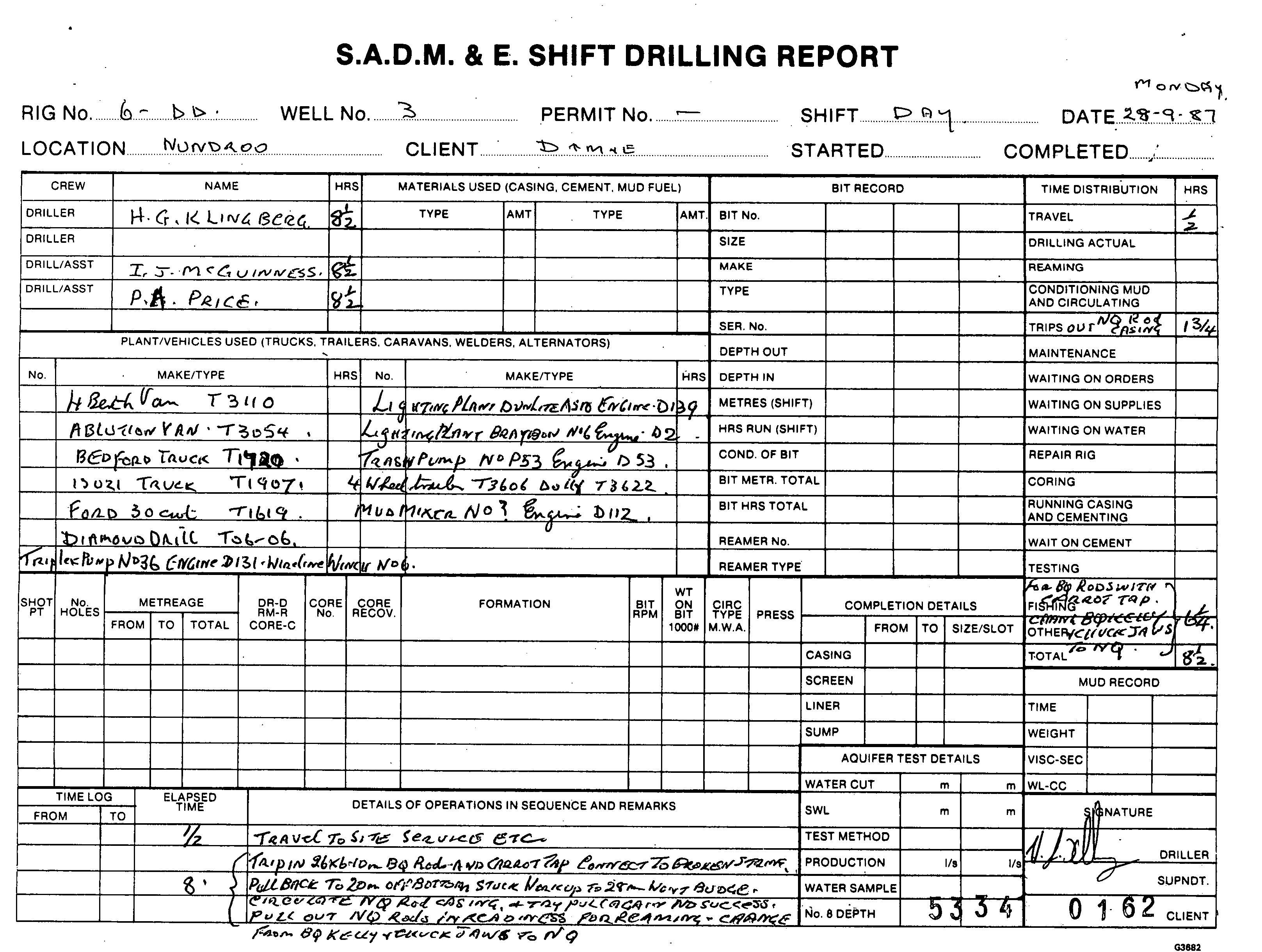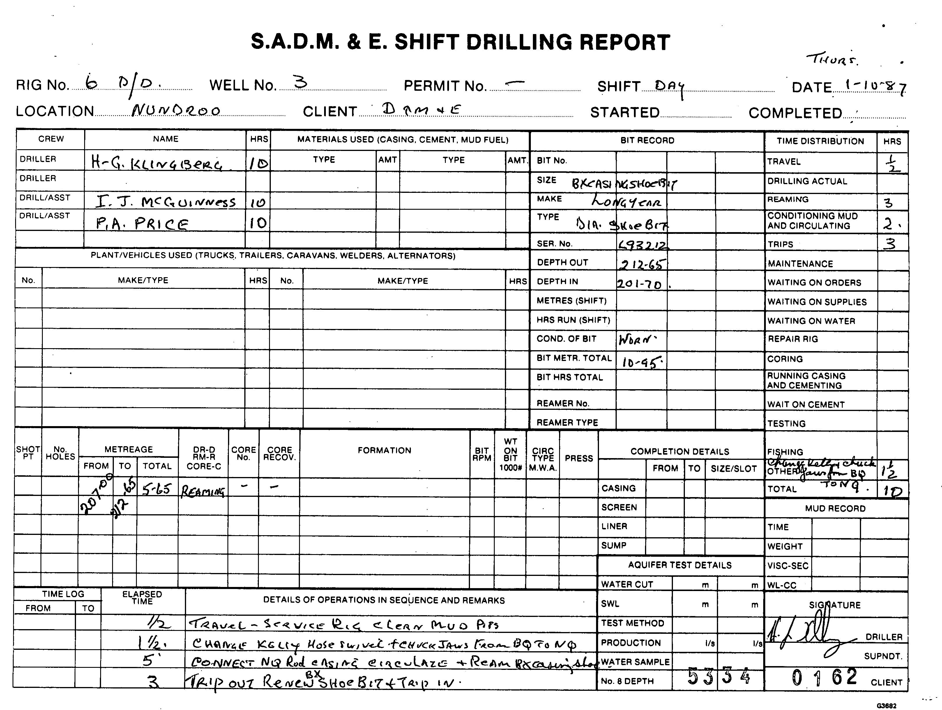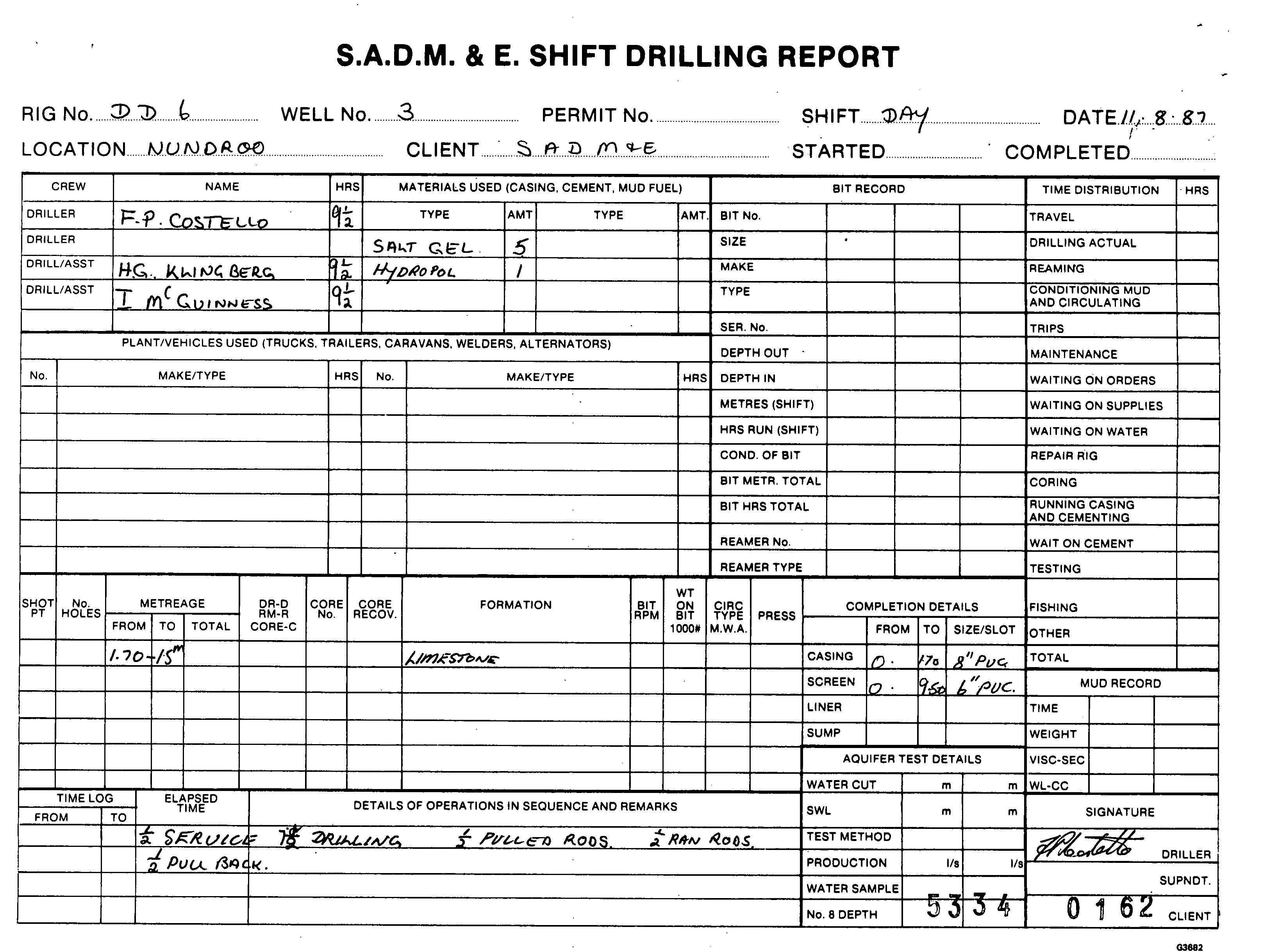 | 187.96 | 188 | Drill core | DALY, S.J. | 27/11/1987 |