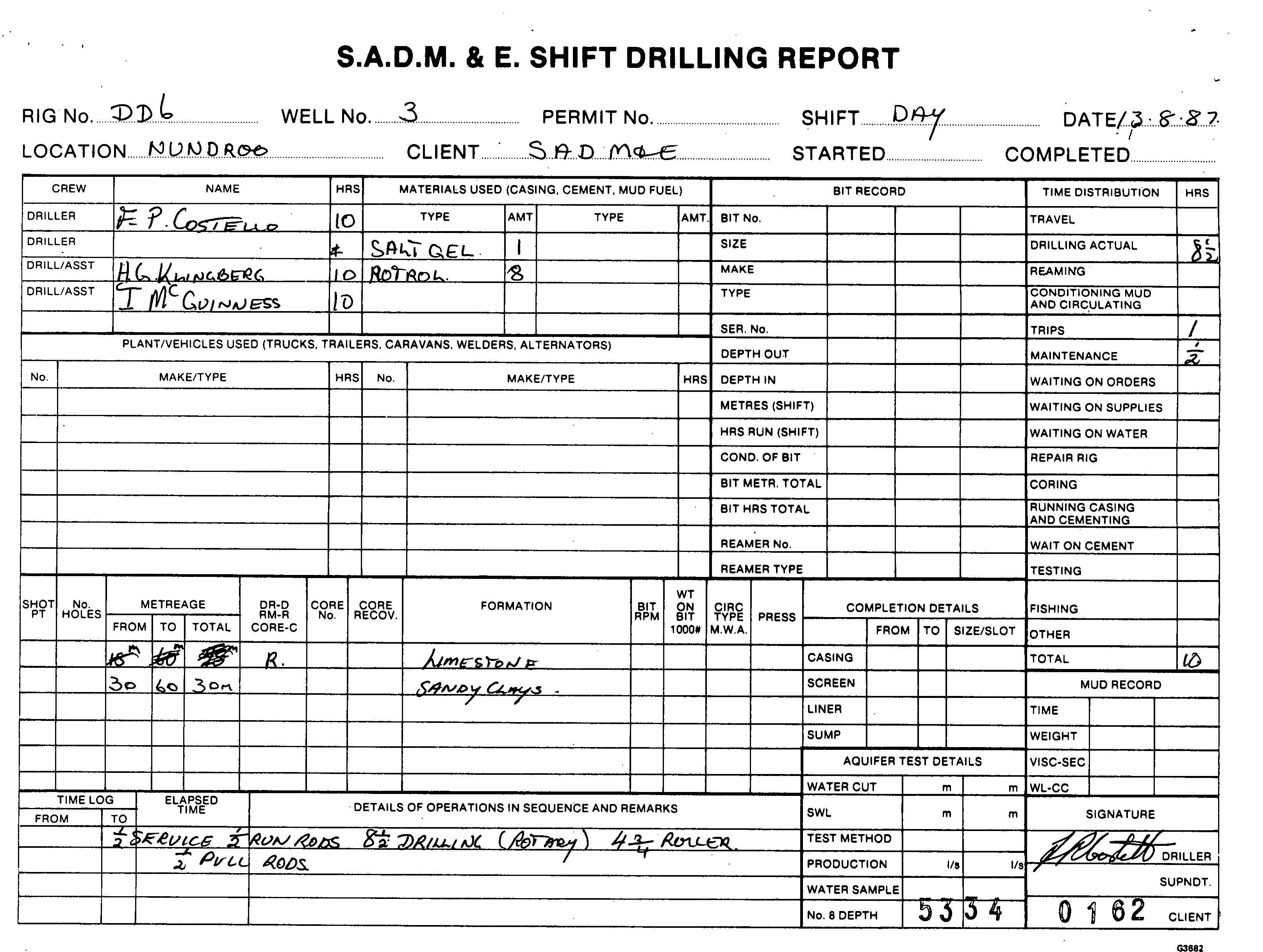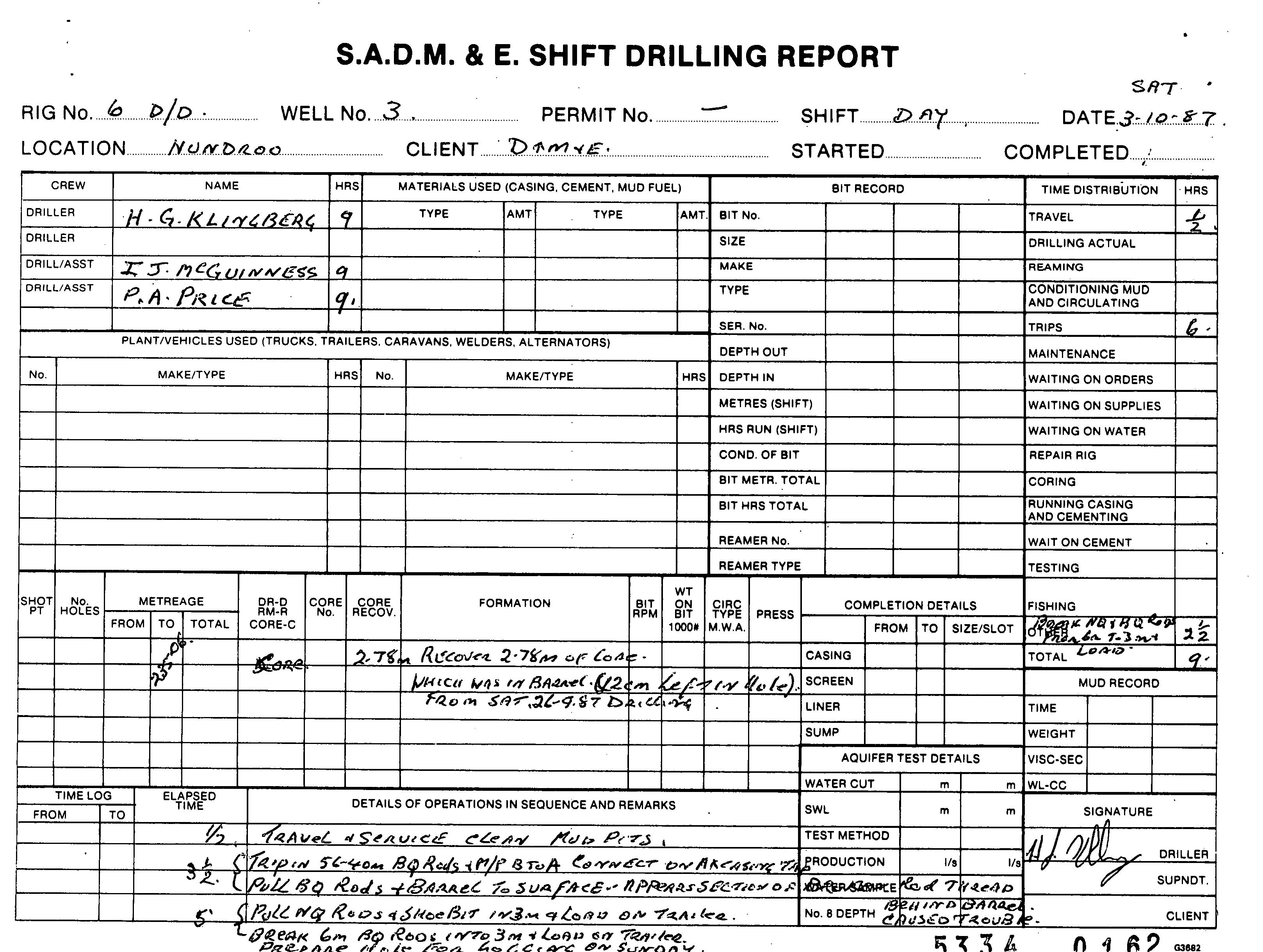 | 122.59 | 122.64 | Drill core | DALY, S.J. | 27/11/1987 |