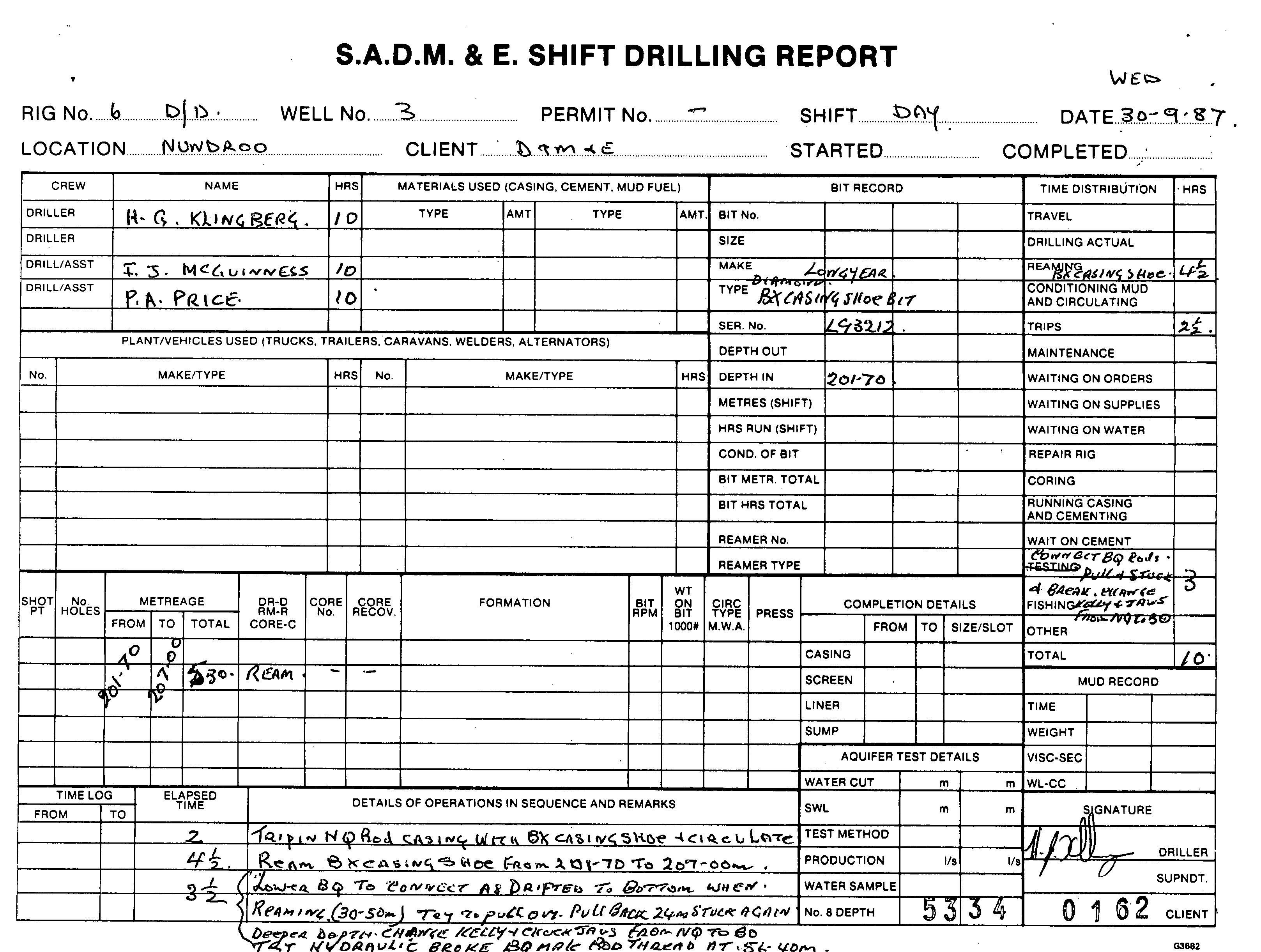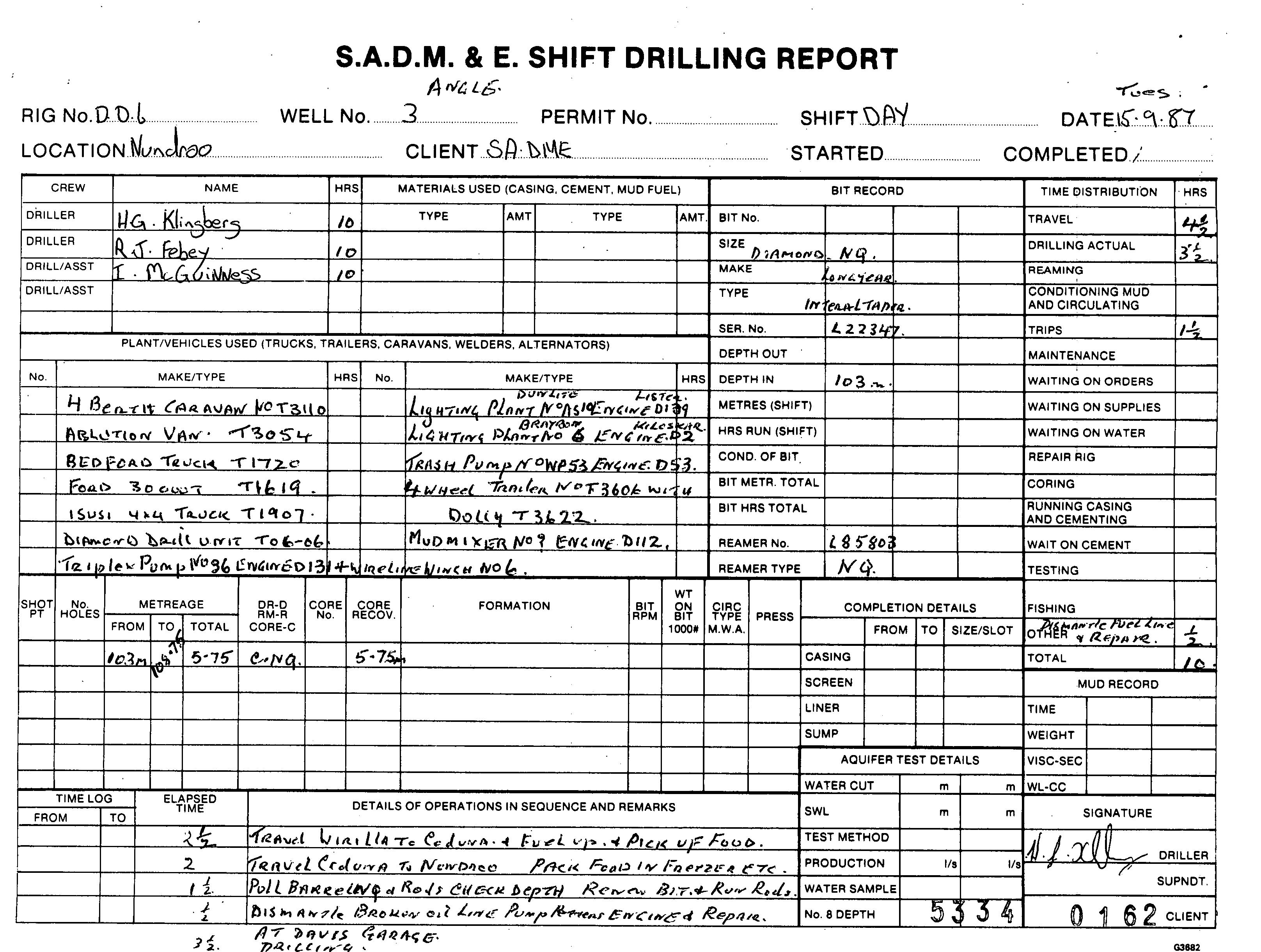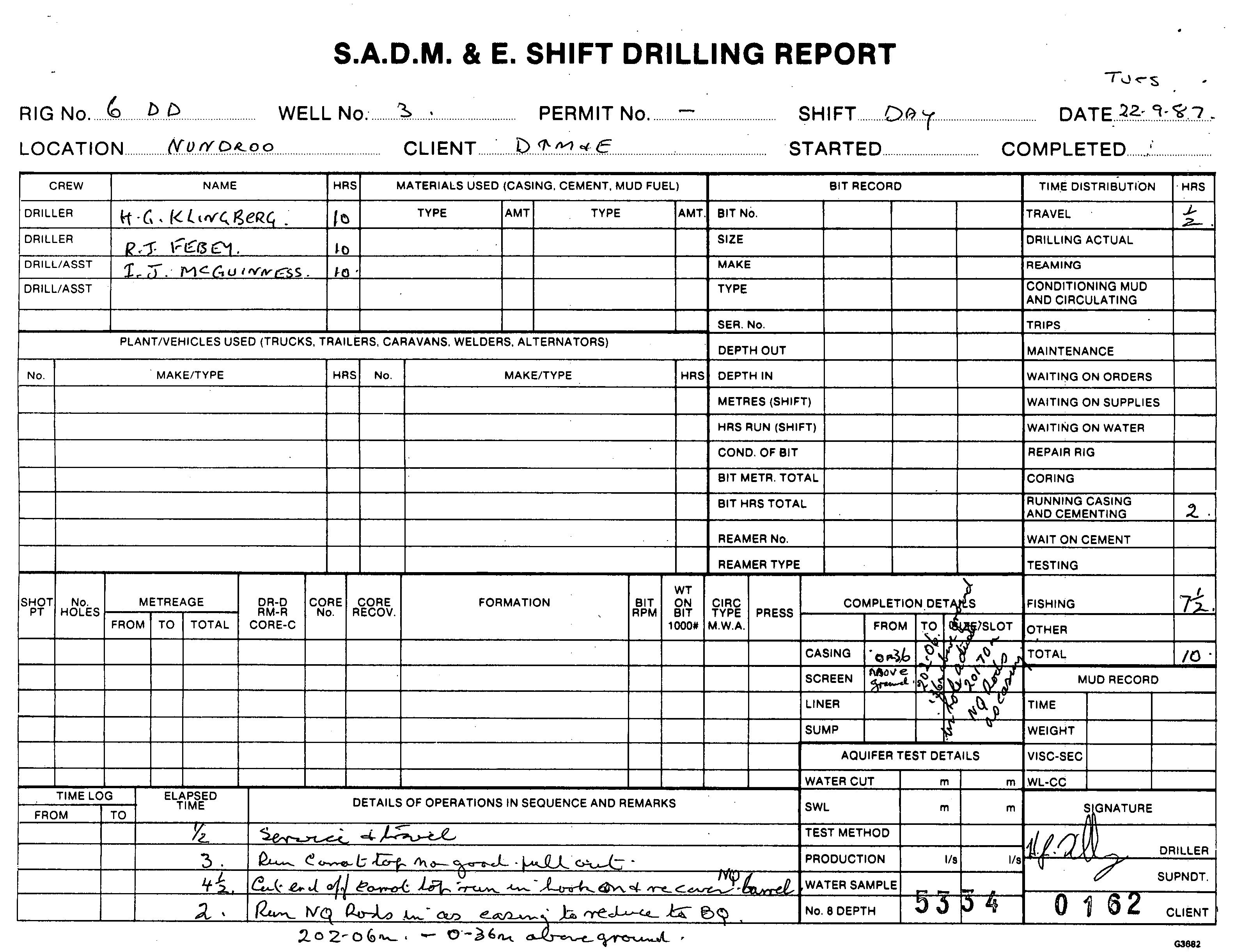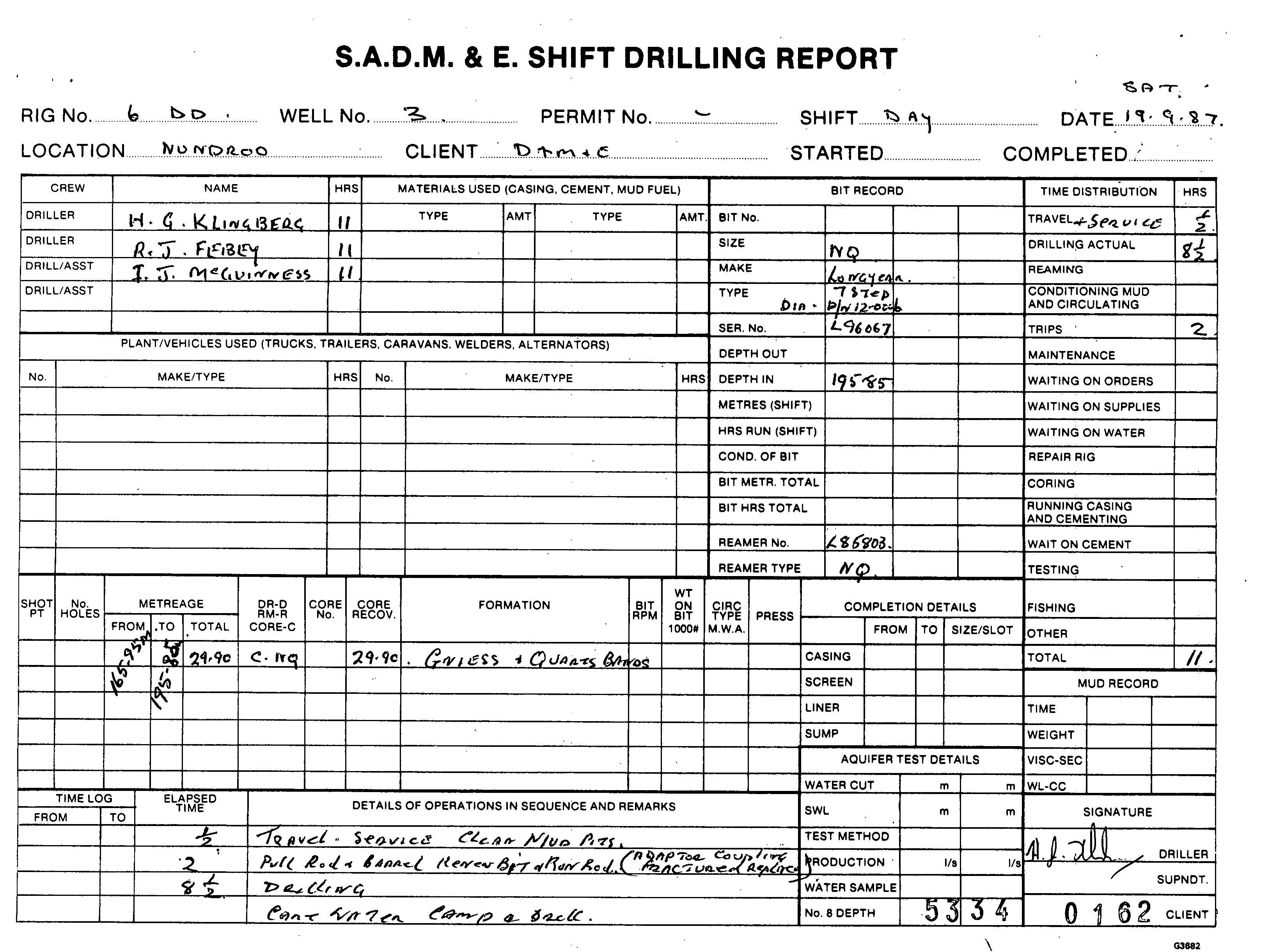| 104 | 105 | Drill core | DALY, S.J. | 27/11/1987 |