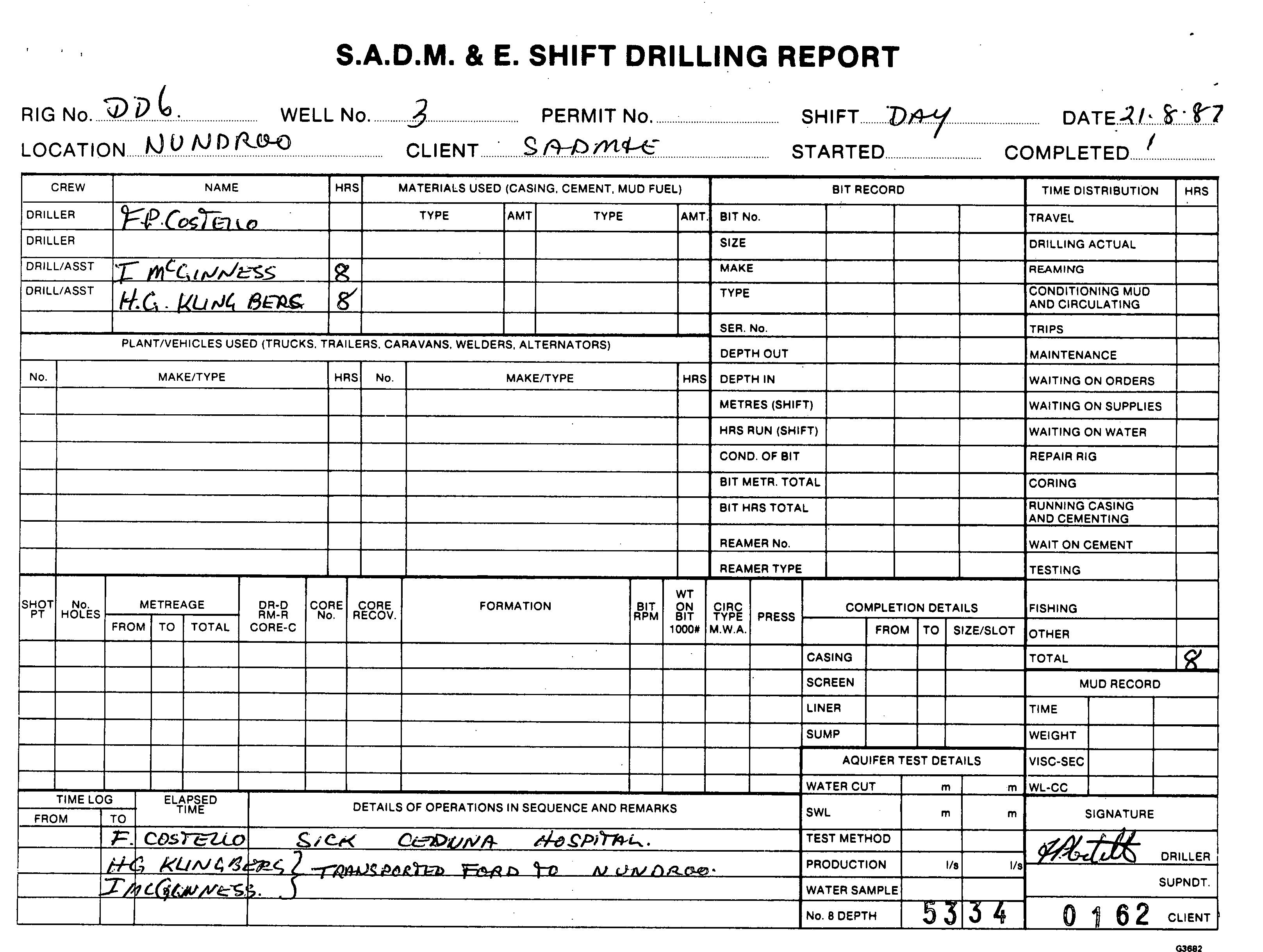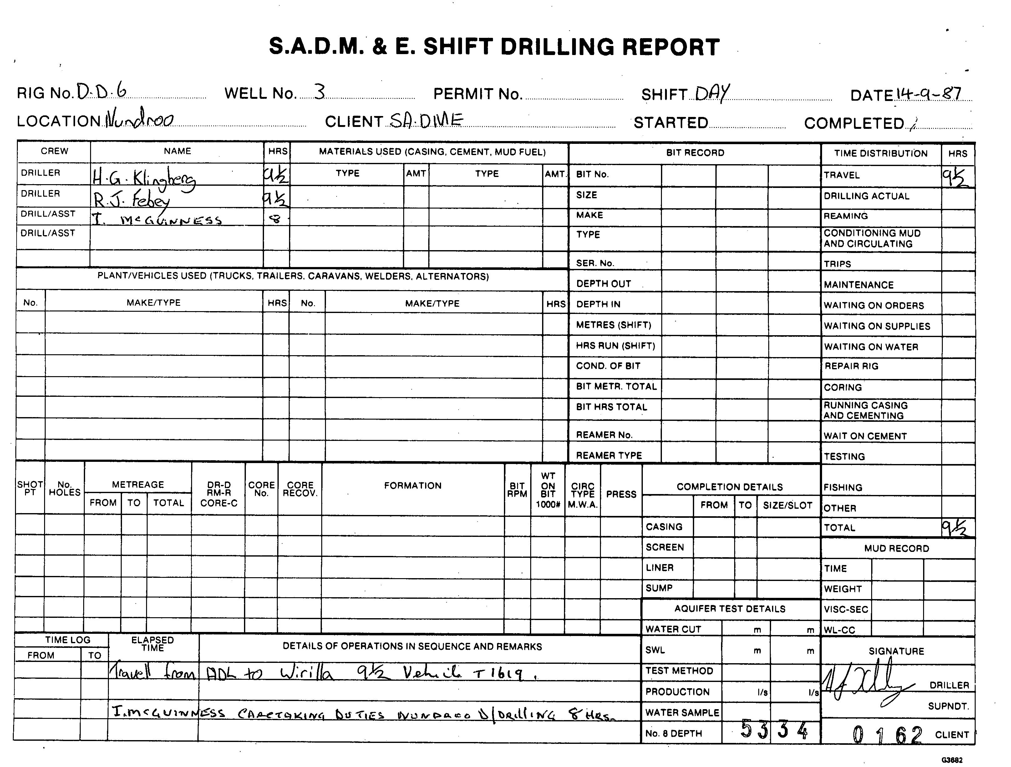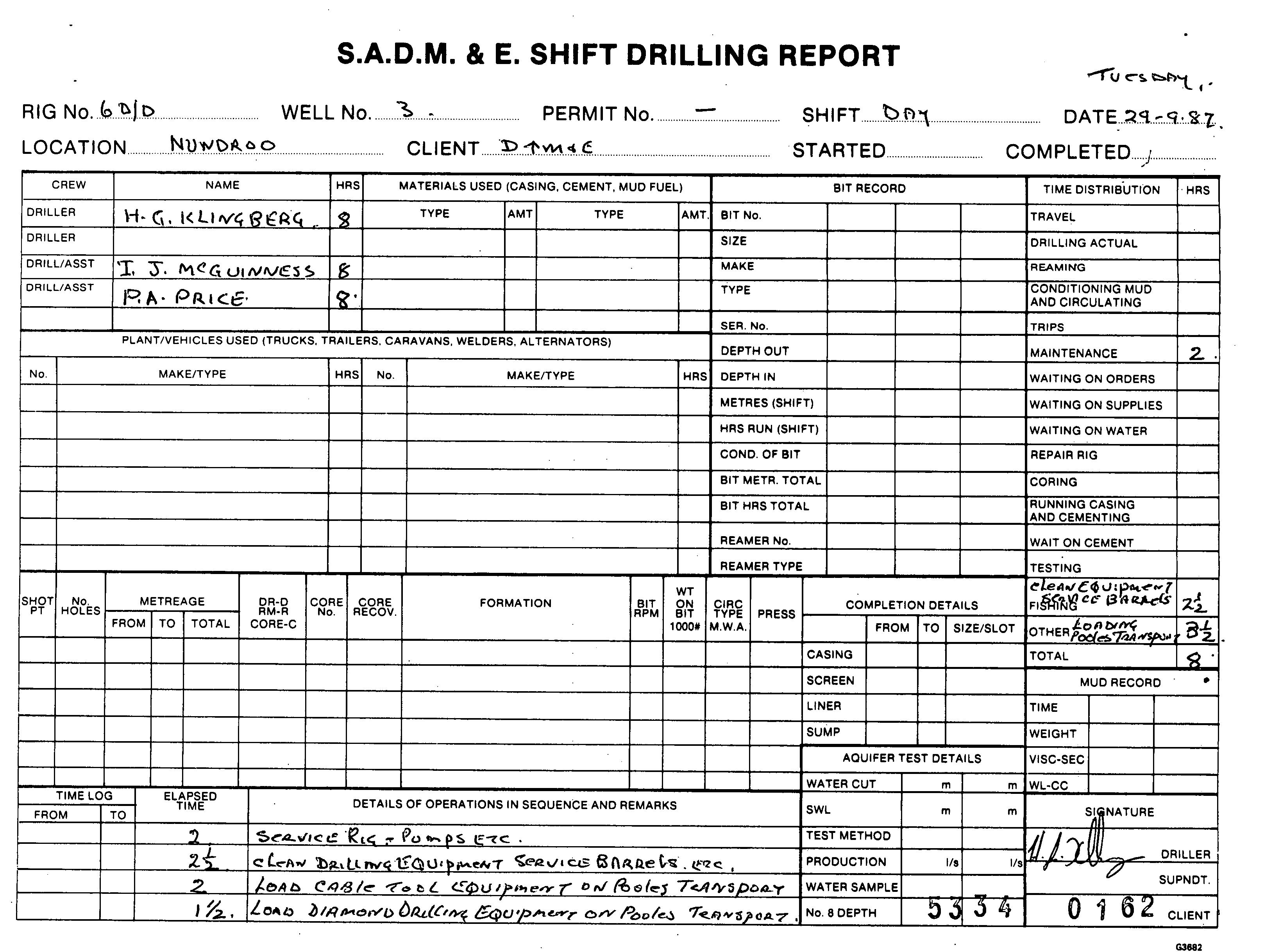 | 104 | 105 | Drill core | DALY, S.J. | 27/11/1987 |