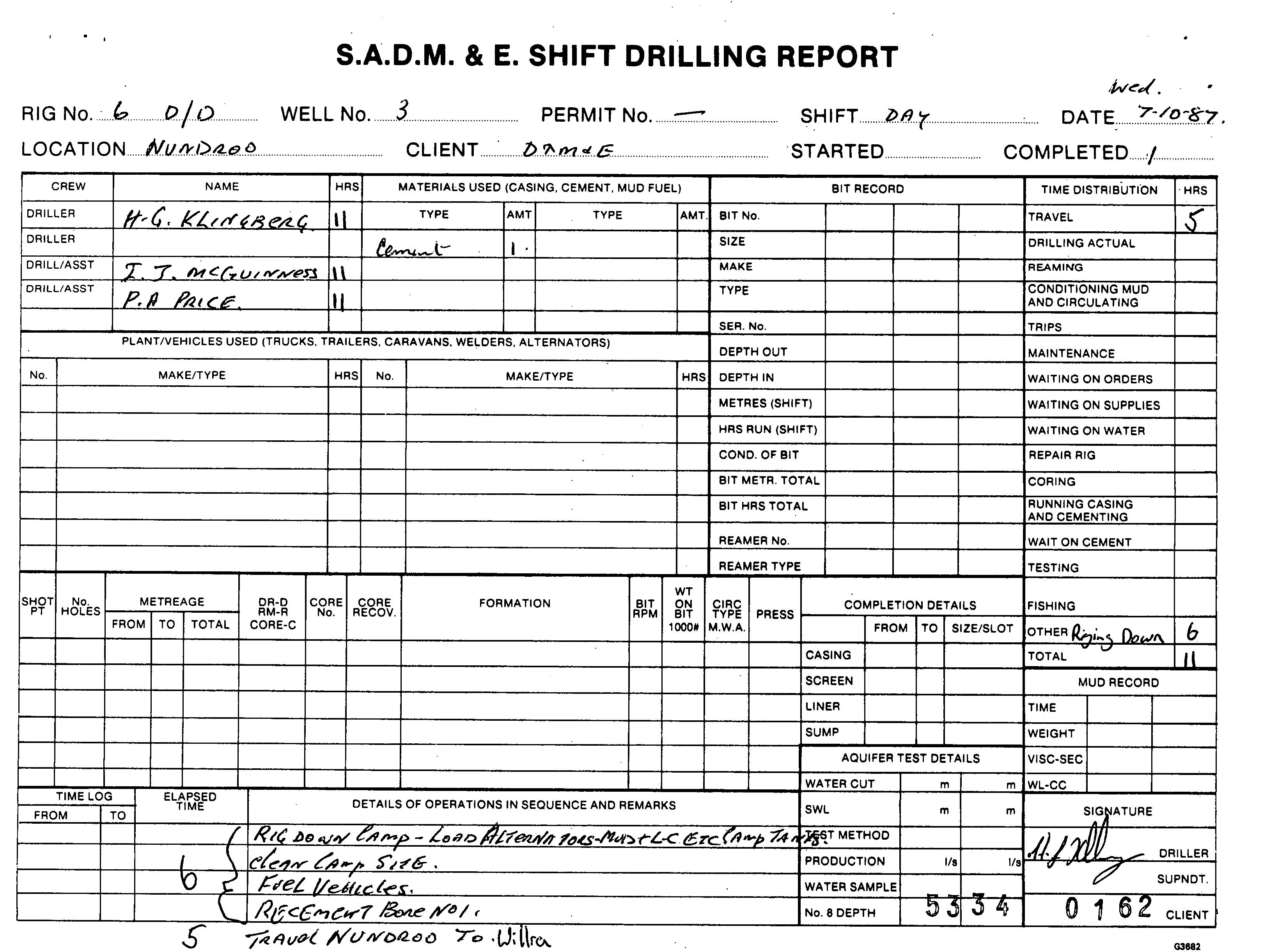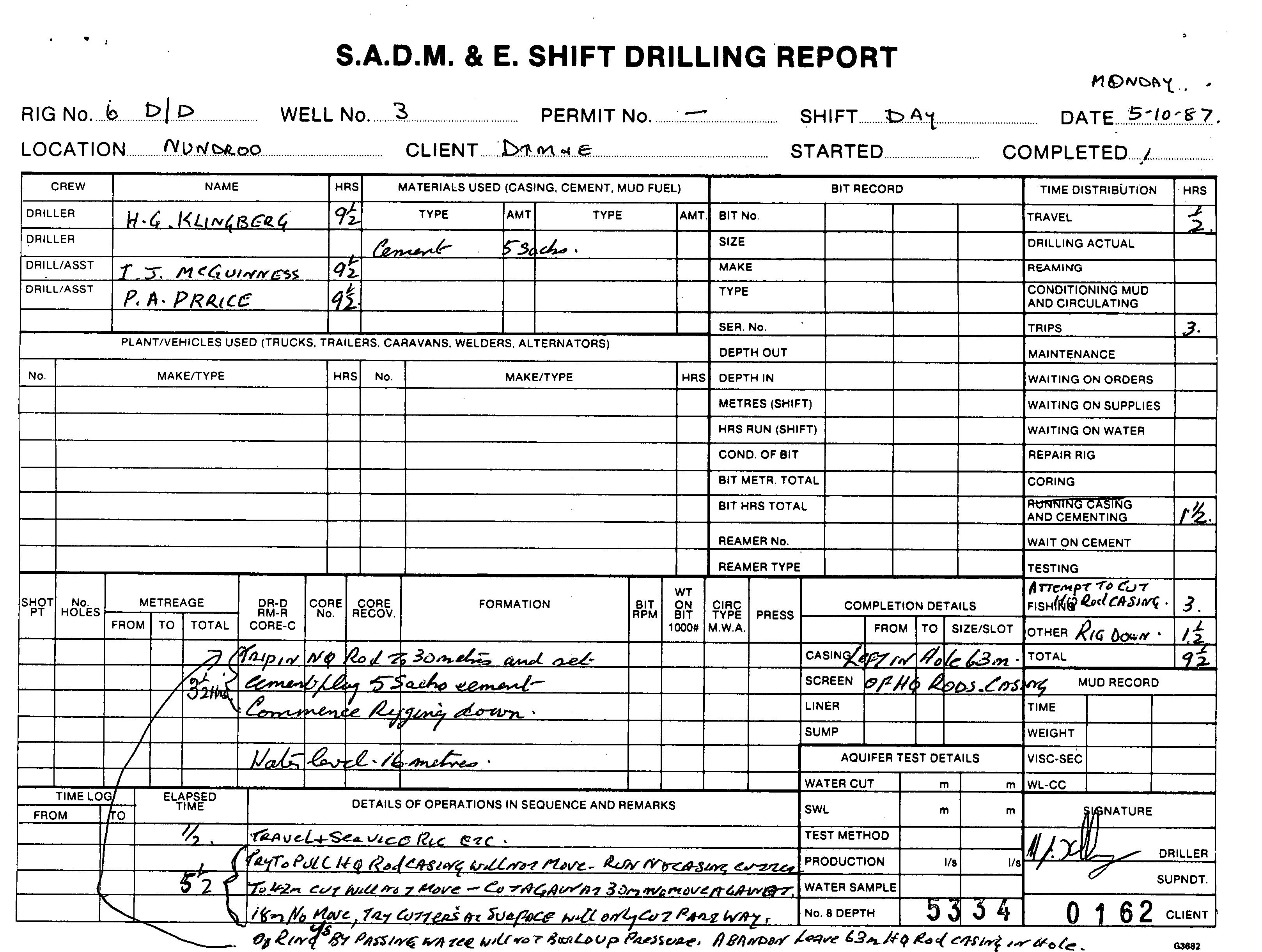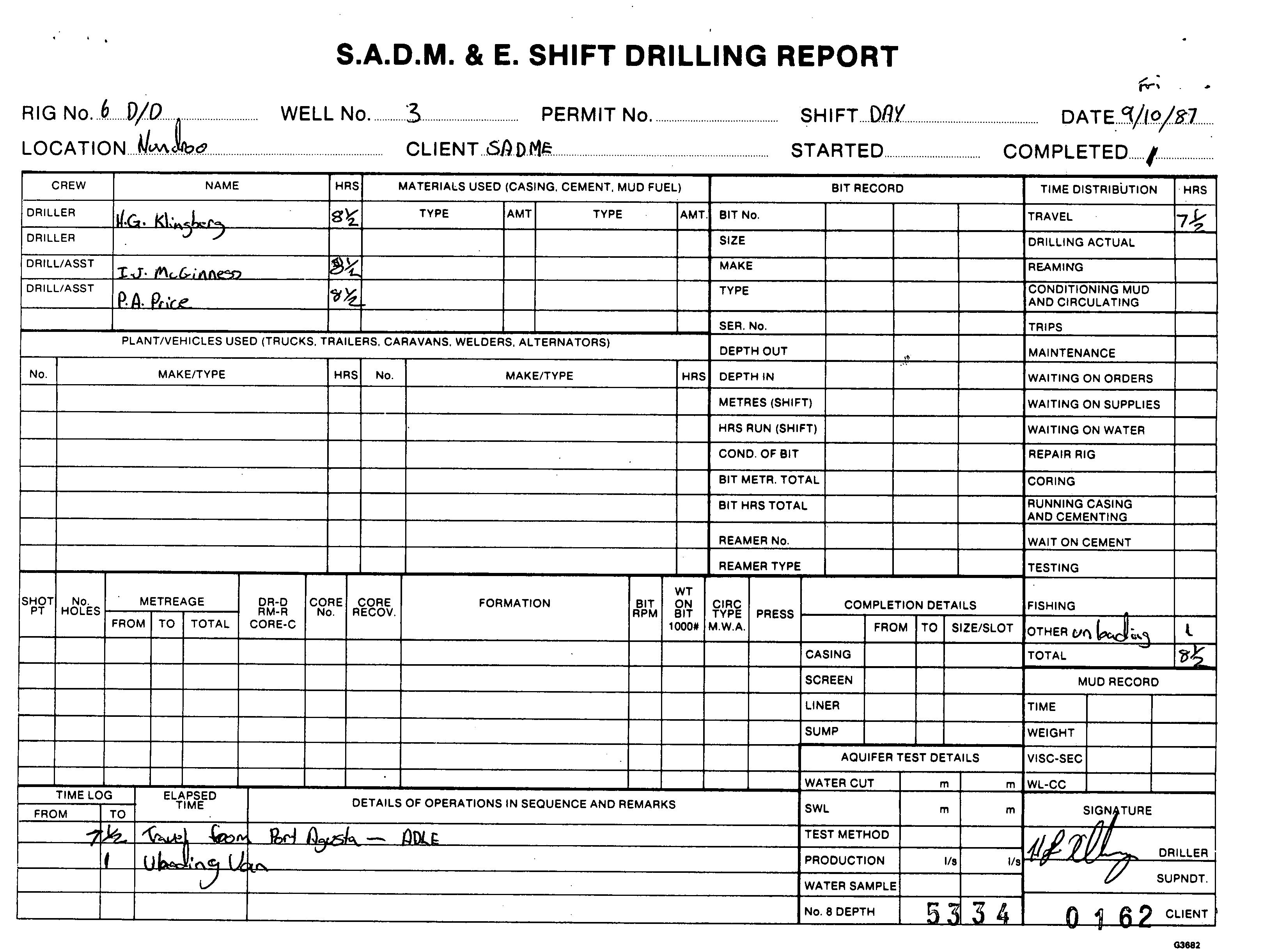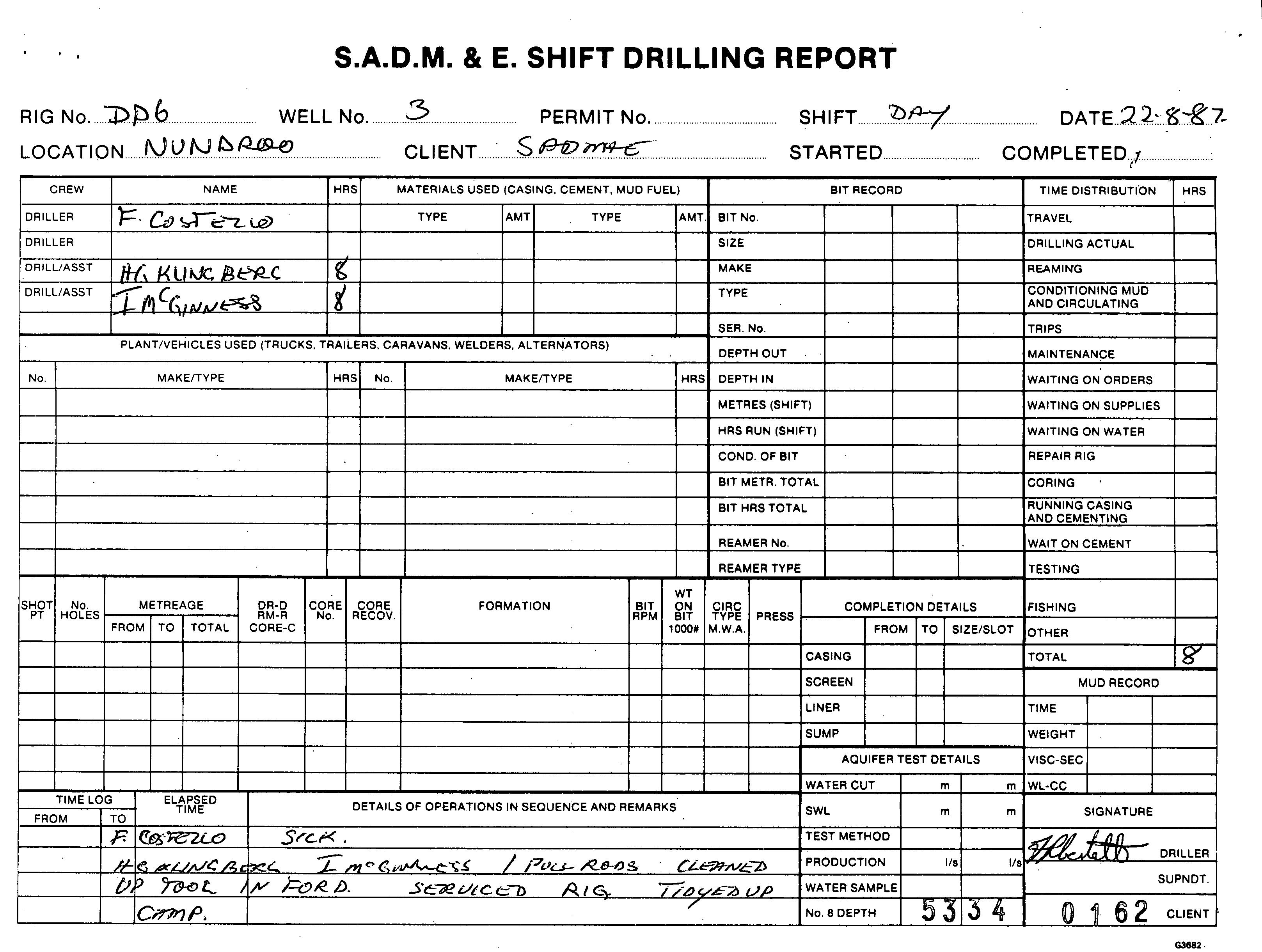 | 104 | 105 | Drill core | DALY, S.J. | 27/11/1987 |