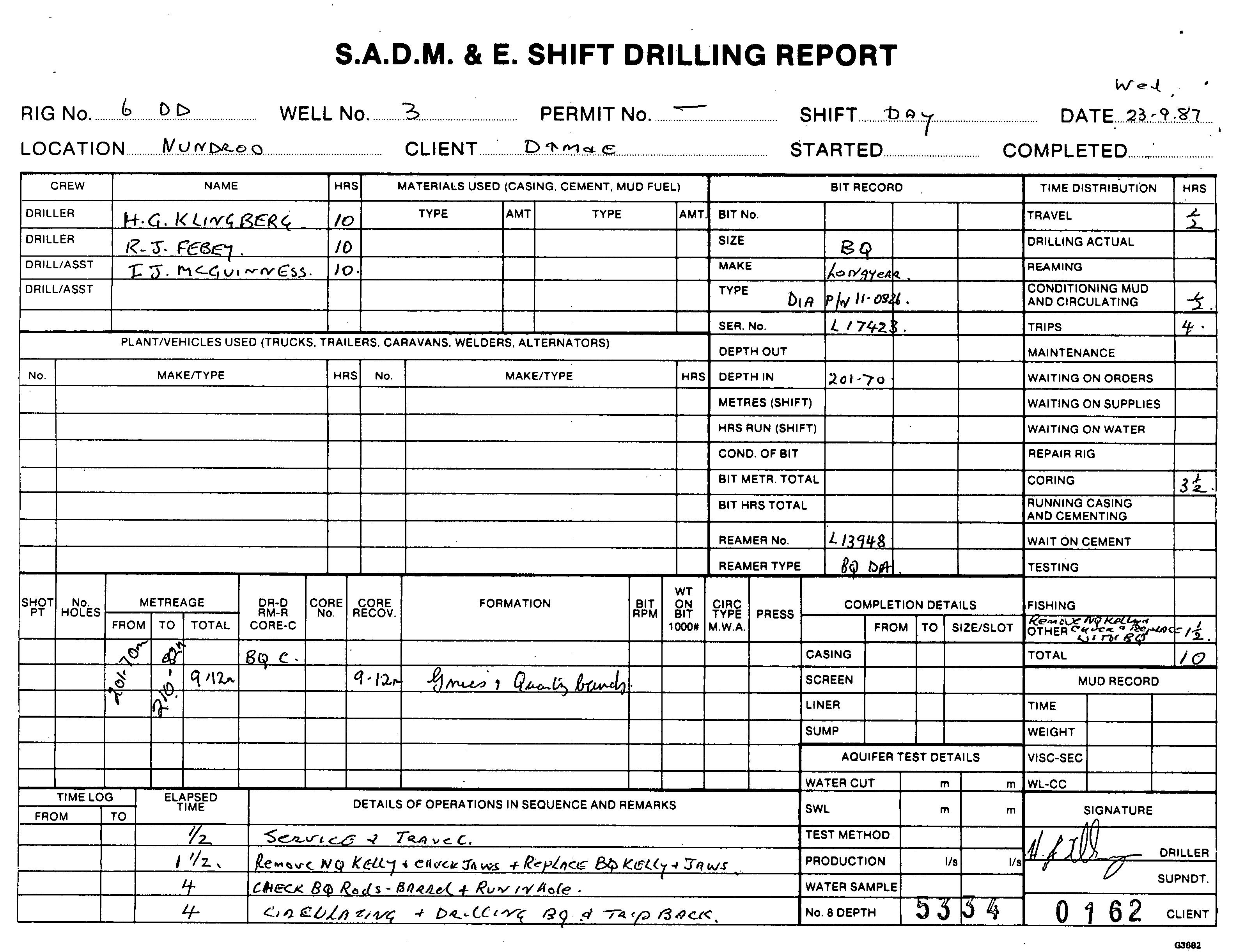 | 129 | 130 | Drill core | DALY, S.J. | 27/11/1987 |