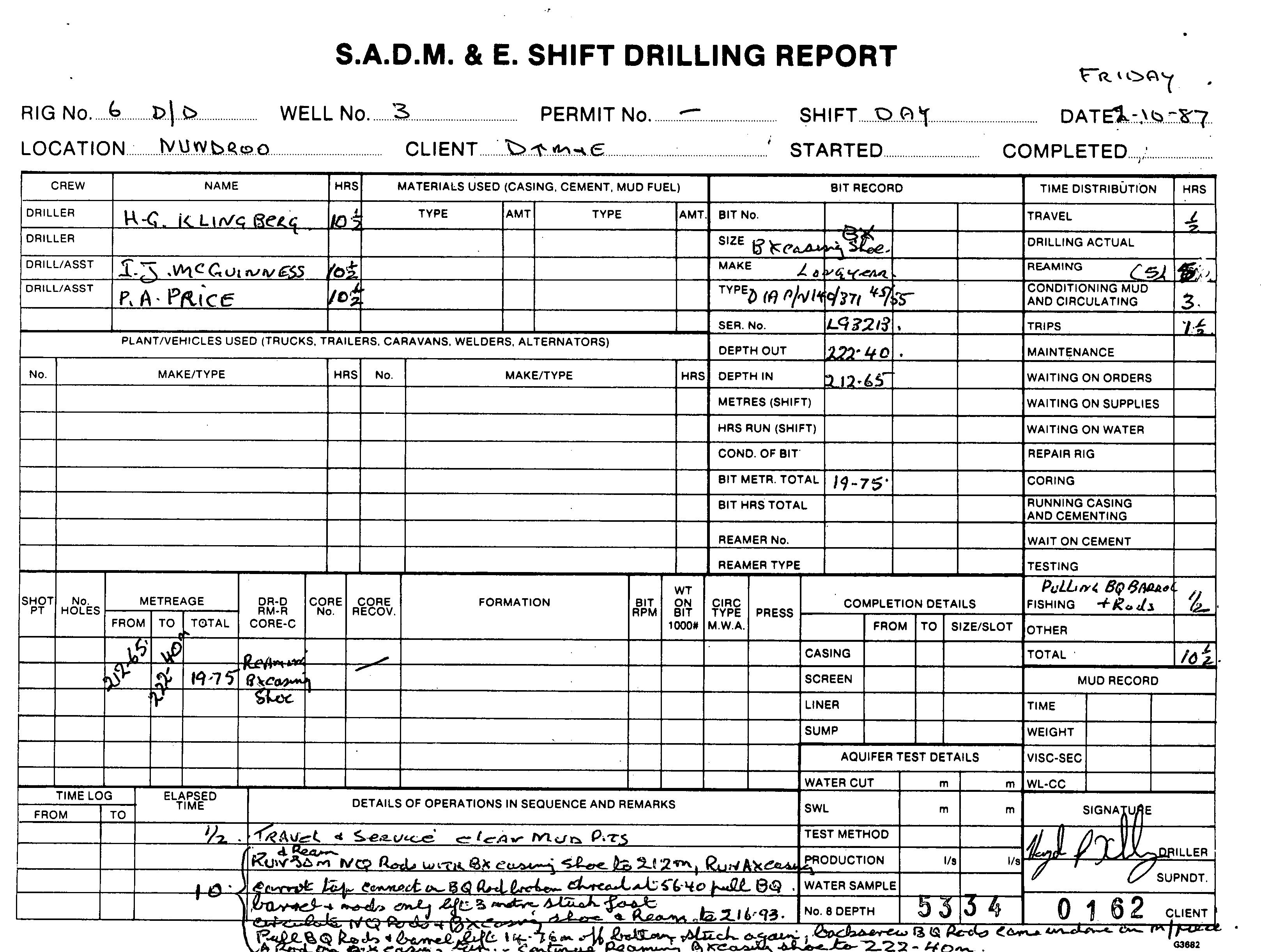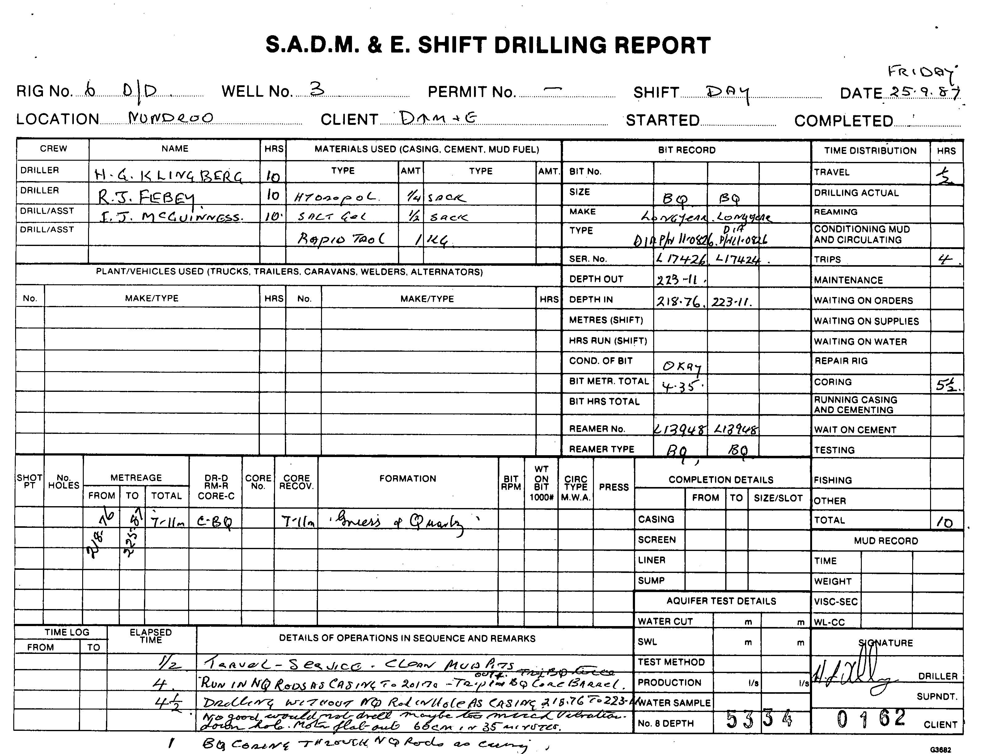 | 218.86 | 218.9 | Drill core | DALY, S.J. | 27/11/1987 |