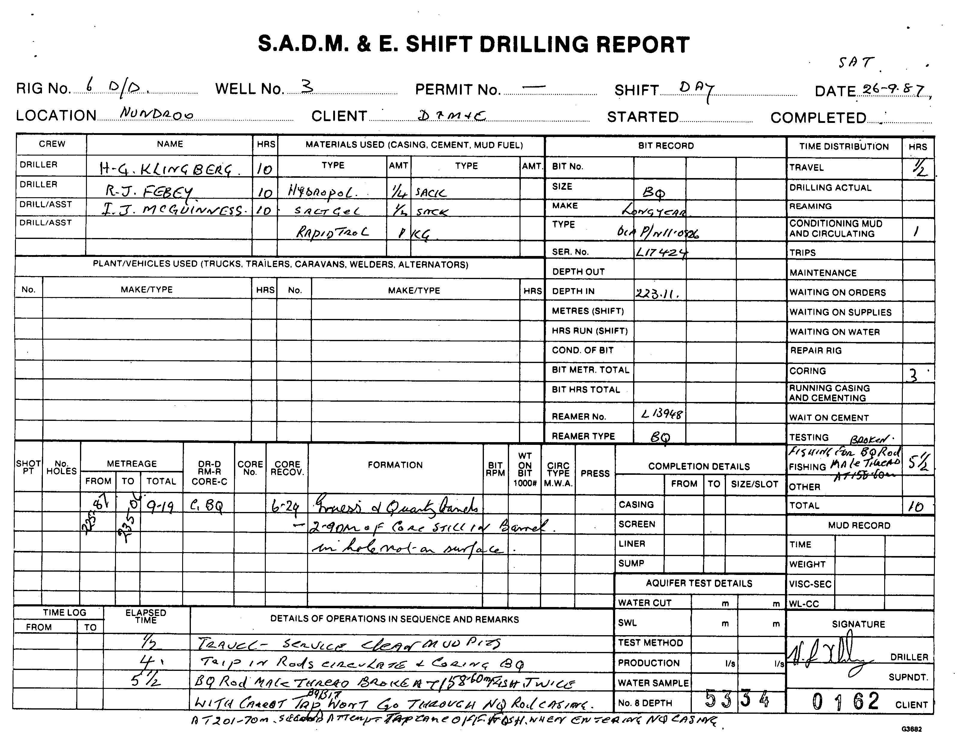 | 228.87 | 229.88 | Drill core | DALY, S.J. | 27/11/1987 |