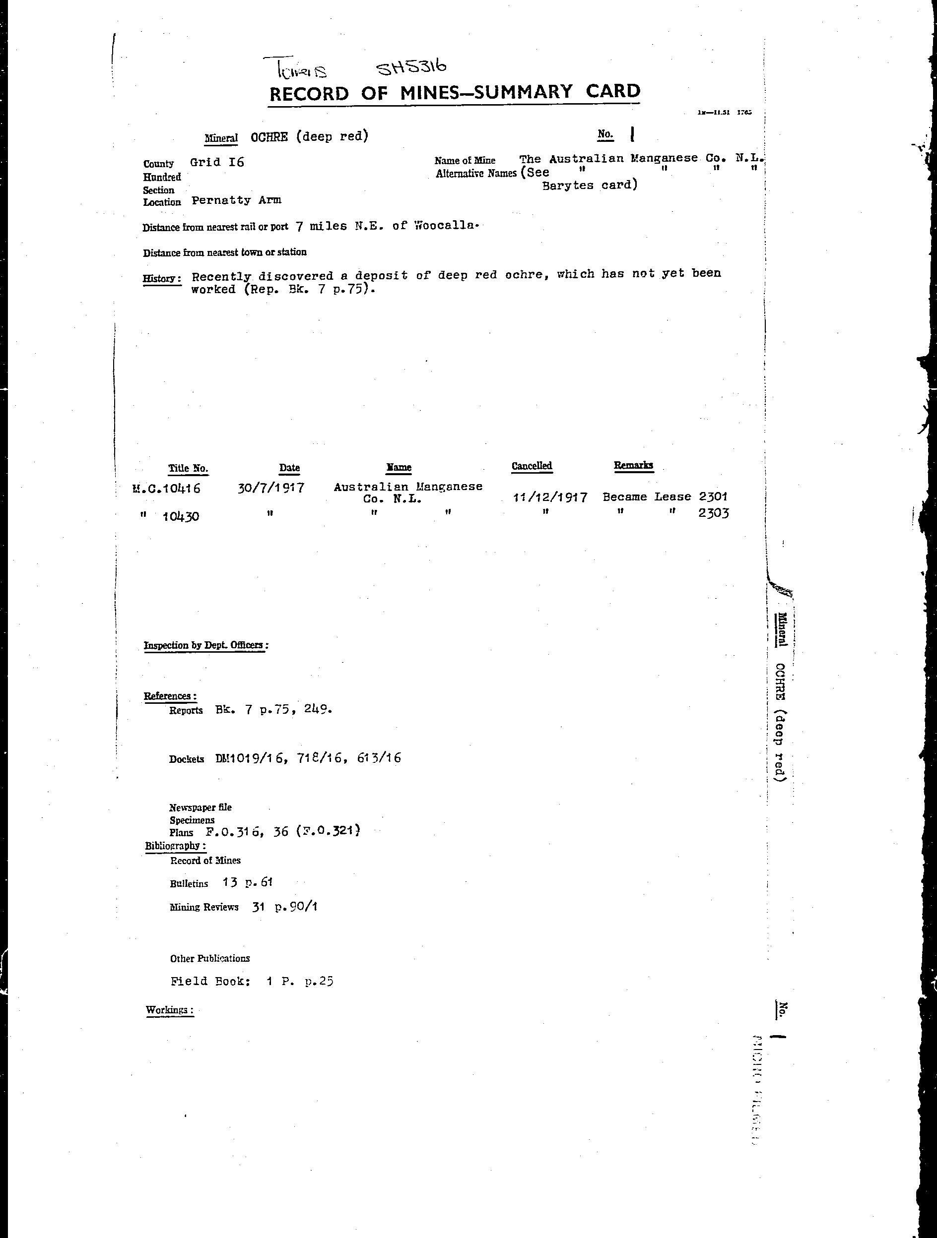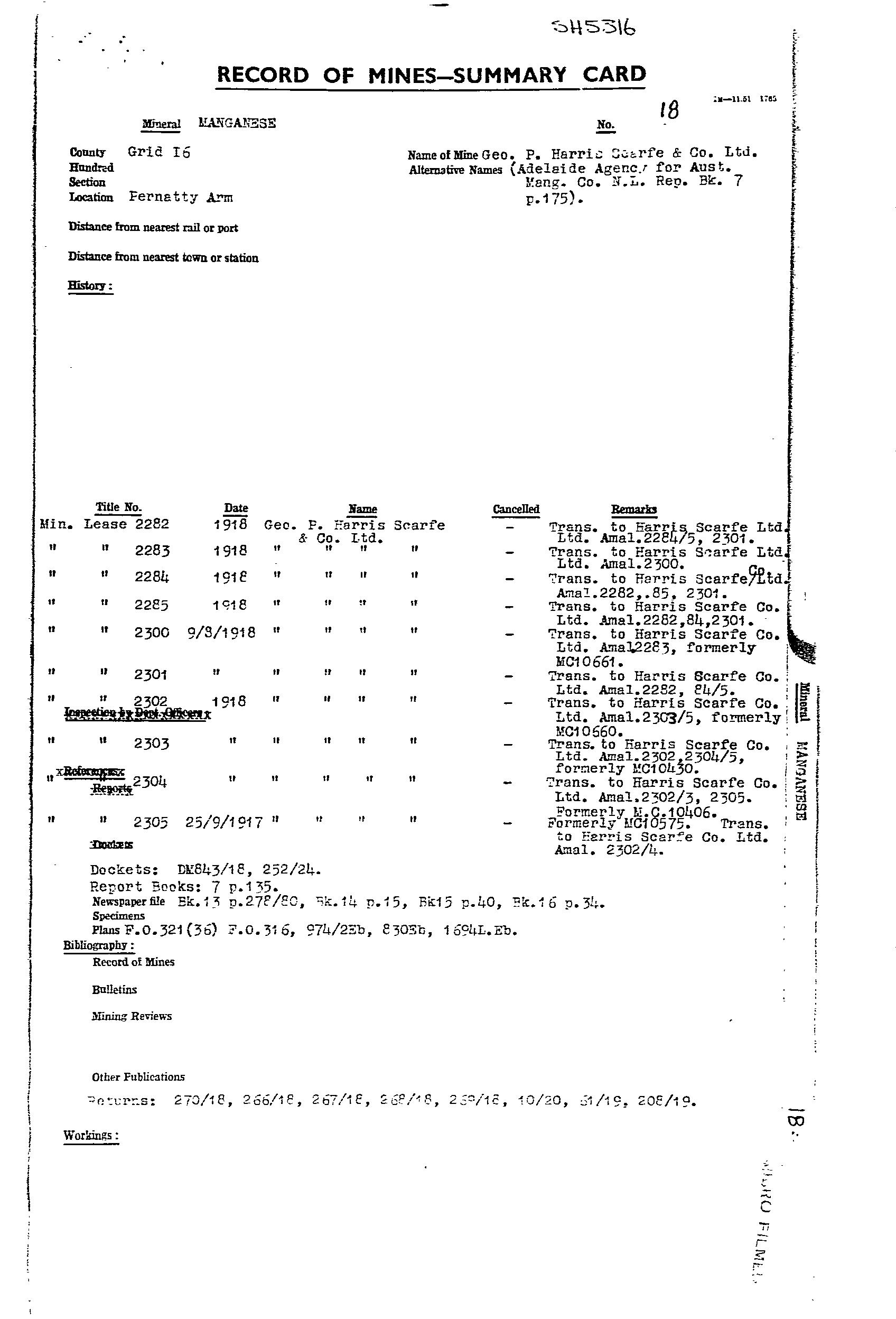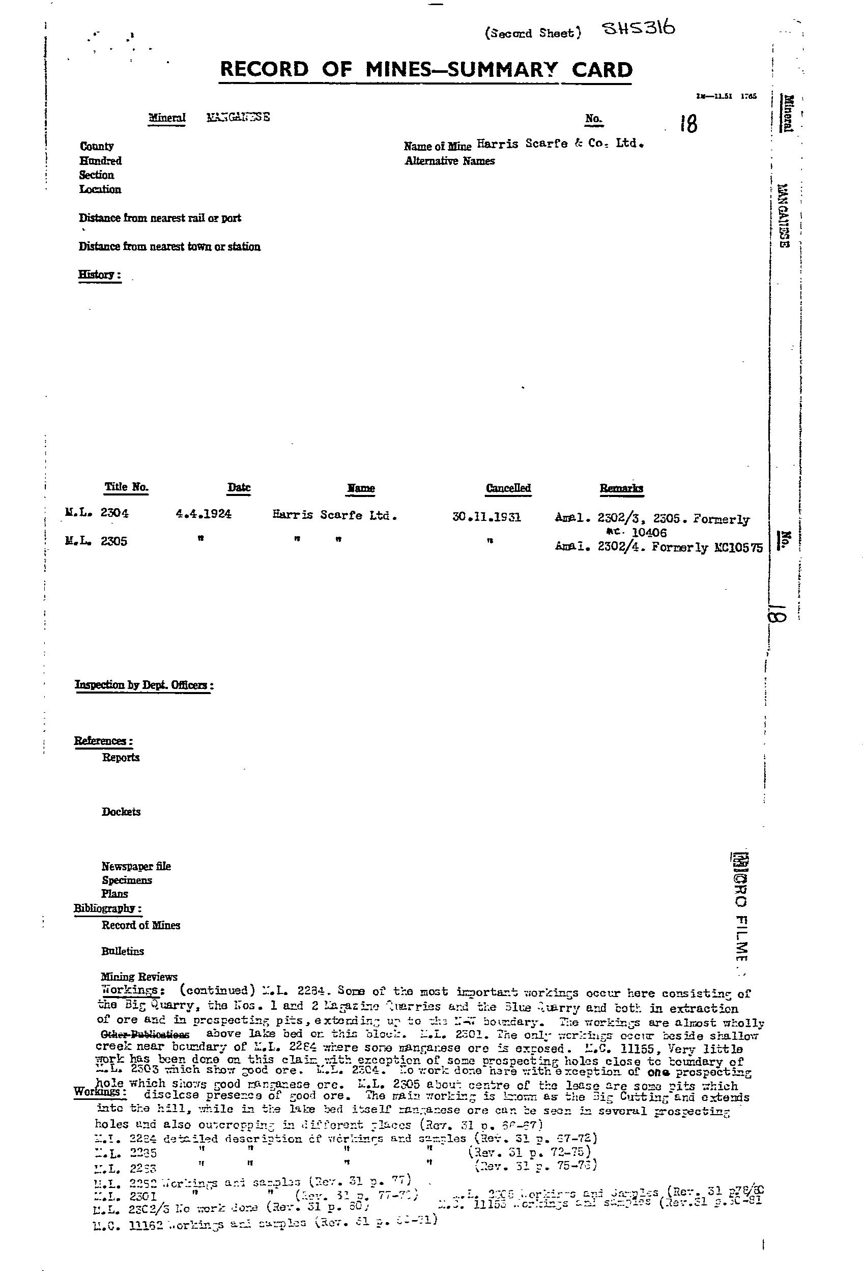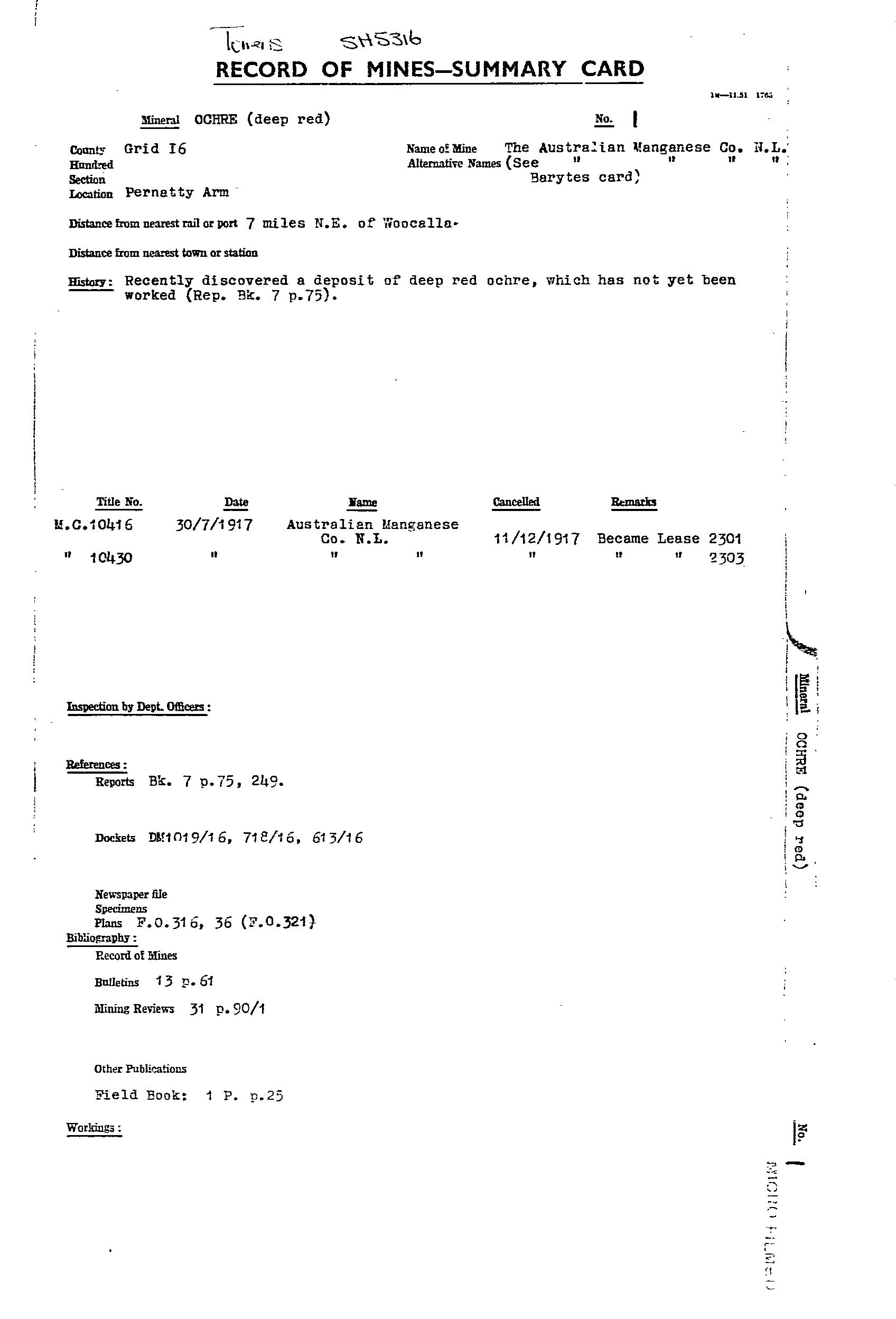 AUSTRALIAN MANGANESE; BIG; BLUE; EAST WEST MINERAL CO. NL; F.R.J. MANGANESE CLAIM; HORSE SHOE; LAKE; MAGAZINE 1; MAGAZINE 2; MAIN; MCGREGORS LAKE; ML 2774; ML 2776; ML 5787; SOUTH EXTENDED MANGANESE SYNDICATE; TRIBUTORS; WASHER